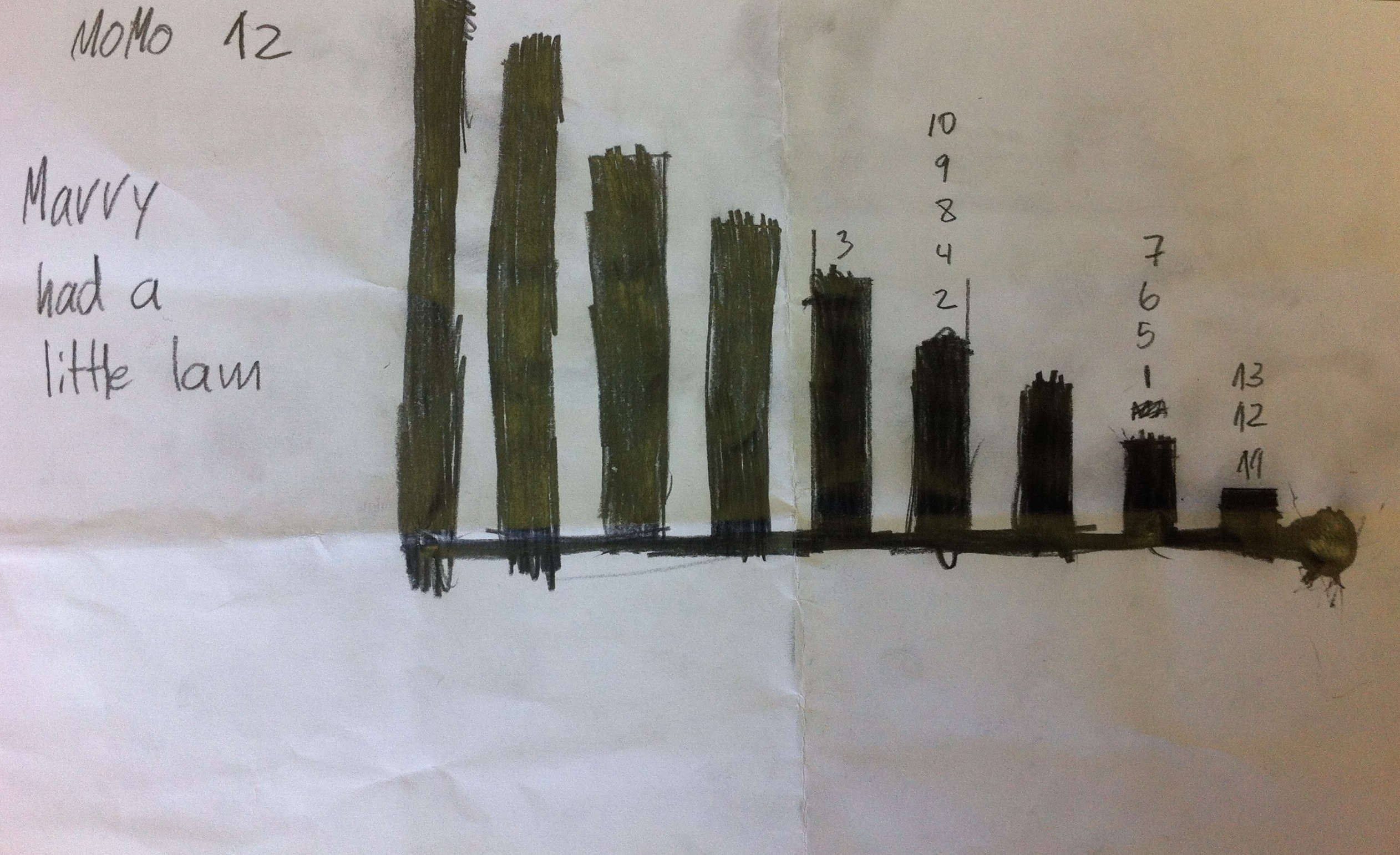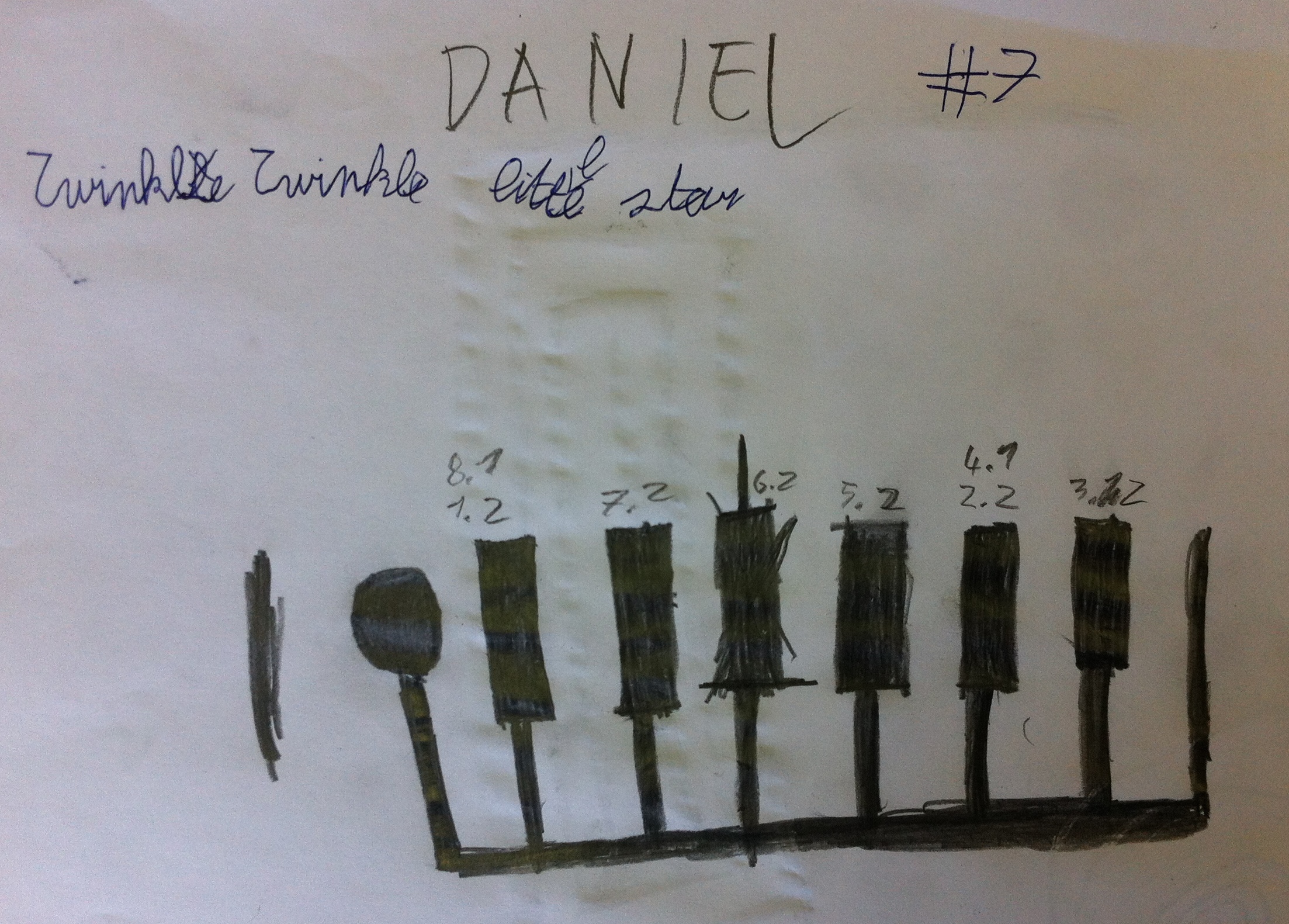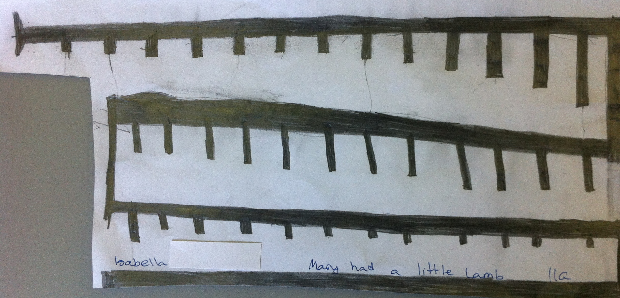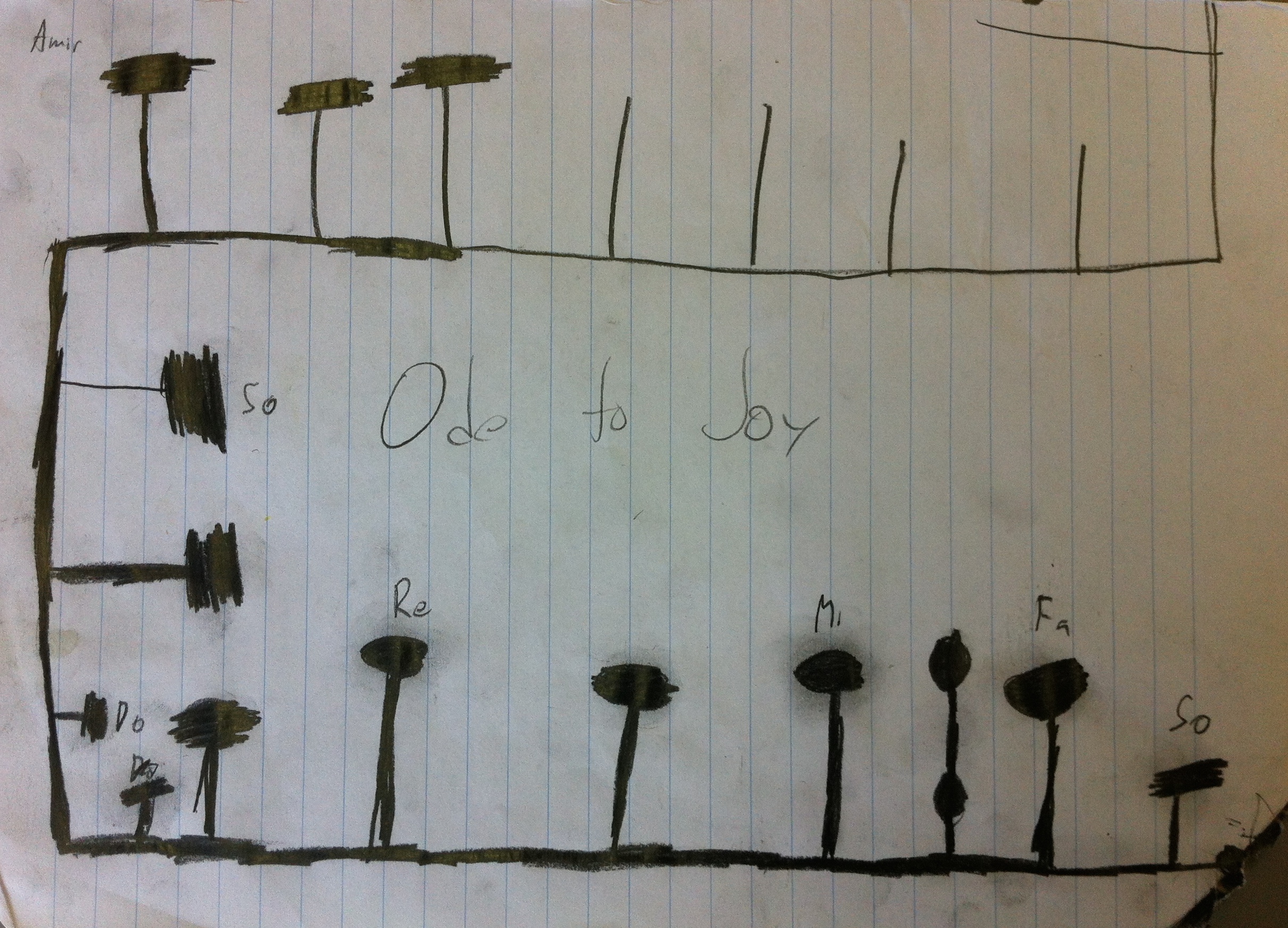 I was so impressed by the different ways my students used to create their songs that I thought my photos of them would make for an interesting Blog post. In the image gallery below, you can not only see the different songs that were played, but also the different strategies students used to turn paper and pencil graphite into a song.